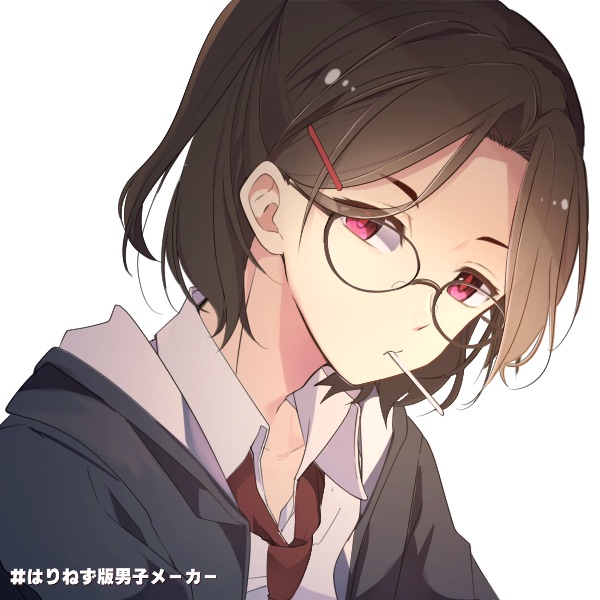眼は血のように紅く、それを眼鏡で少し誤魔化そうとしている。