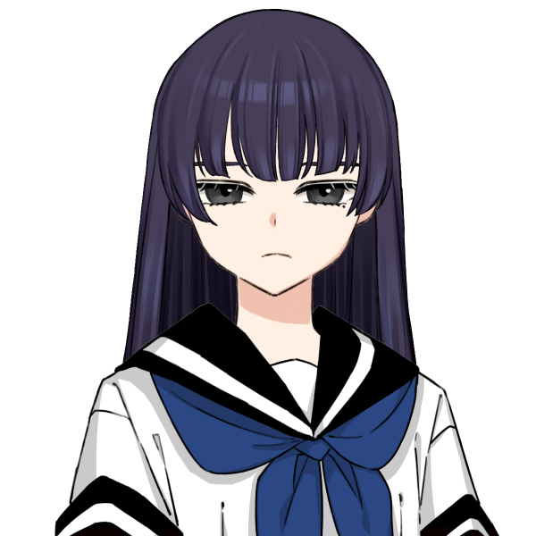 黒髪ストレートロングヘア、黒目。