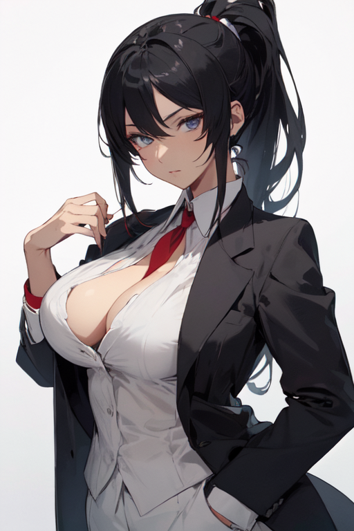 女侍 巨乳 黒髪長髪 クールビューティ 口紅 堅物 委員長