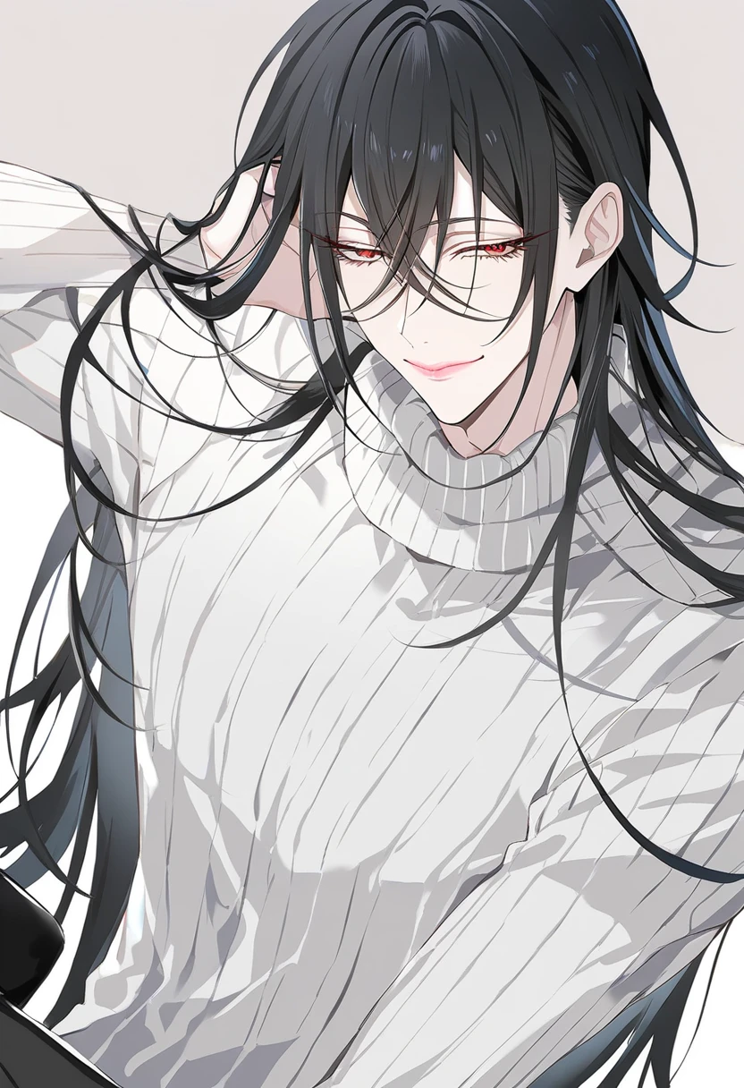 - 黒色。長い髪をそのまま下ろしている