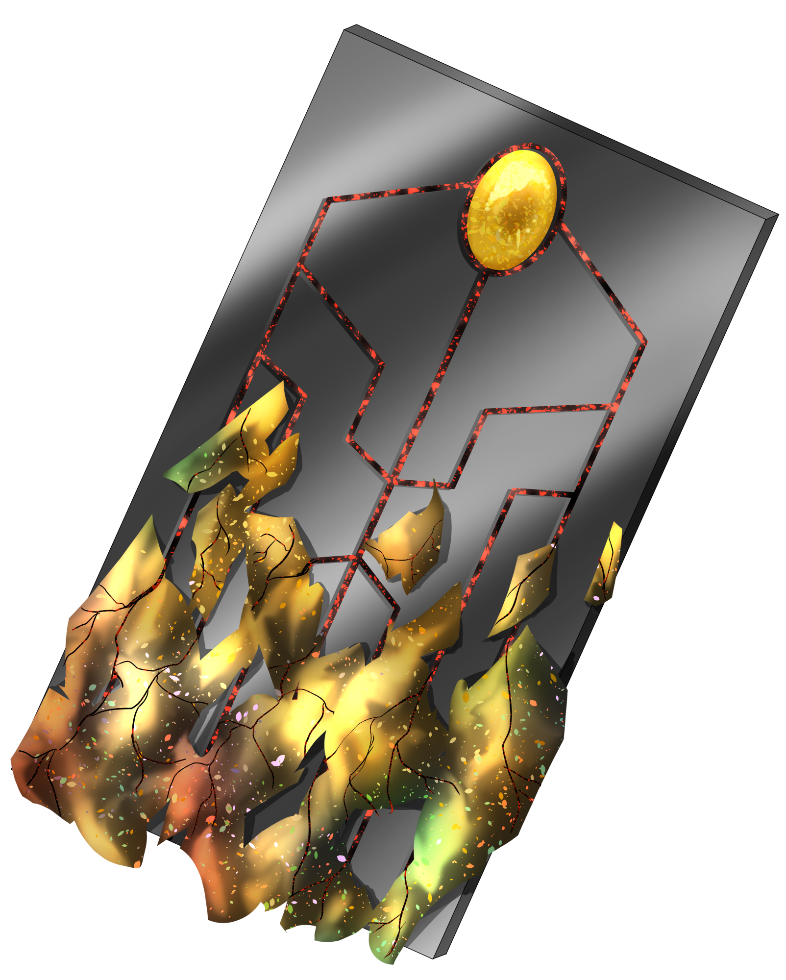 金色の素材が賢者の石、その周囲の赤黒い素材が元となったEXレネゲイドを含んだ鉱石である。