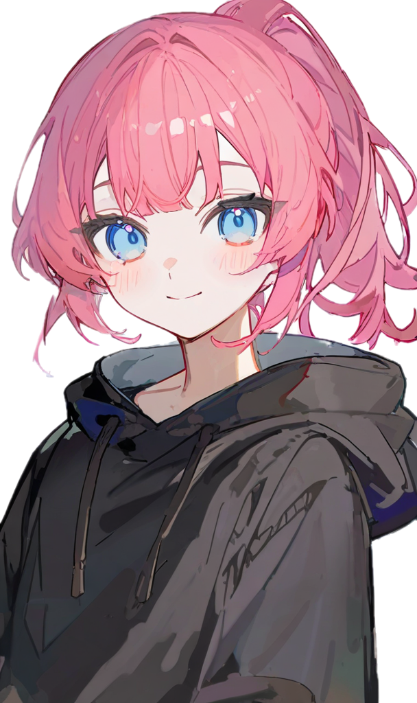 滑らかな曲線の多い、少女と見紛うような顔立ちの少年。桃髪は地毛。