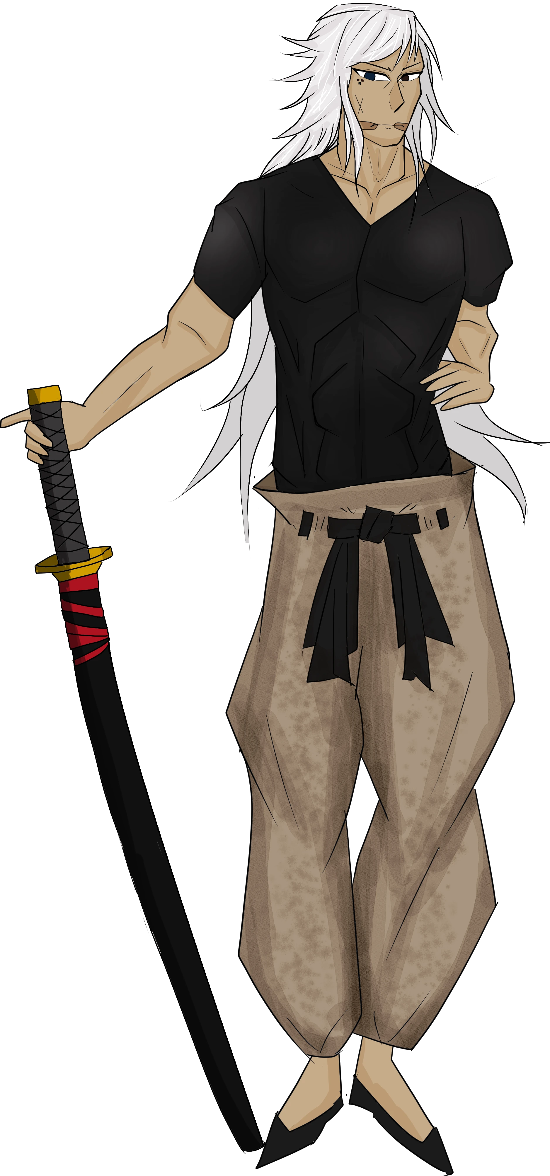 自らの力を封じる刻印を背中へ刻み、動きを阻害するコートに鉄球を足に携えて、自らの力を抑制している。