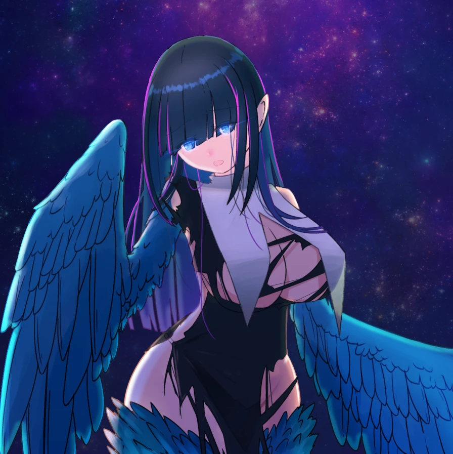 後に教団は「異なる神」と名乗る存在――グレイプニルの襲撃を受けて壊滅。鎖によって彼女自身も肉体を変質させられ、人間としての尊厳を否定される形で死に至りかけたとき、オーヴァードとして覚醒する。現在は鳥獣に近い異形の姿となっており、《異形の痕》の影響で手が翼状に変異したまま。すらりとした慎ましい胸はひどく膨らみ、清楚なシルエットを喪失。食事や着替えなど、日常生活の大半を自力で行うことができない。