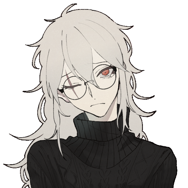 元々は目付きの悪さを隠すために伊達メガネを着用していたが、参加した作戦で受けた傷が原因で右目を失明、左目にも後遺症が残り、現在かけている眼鏡はかなり度数が高め。