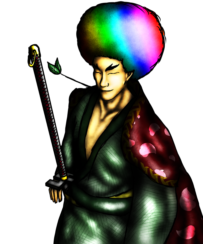 結っていた丁髷も、すっかり街に染まってしまい立派なアフロヘアーになった。