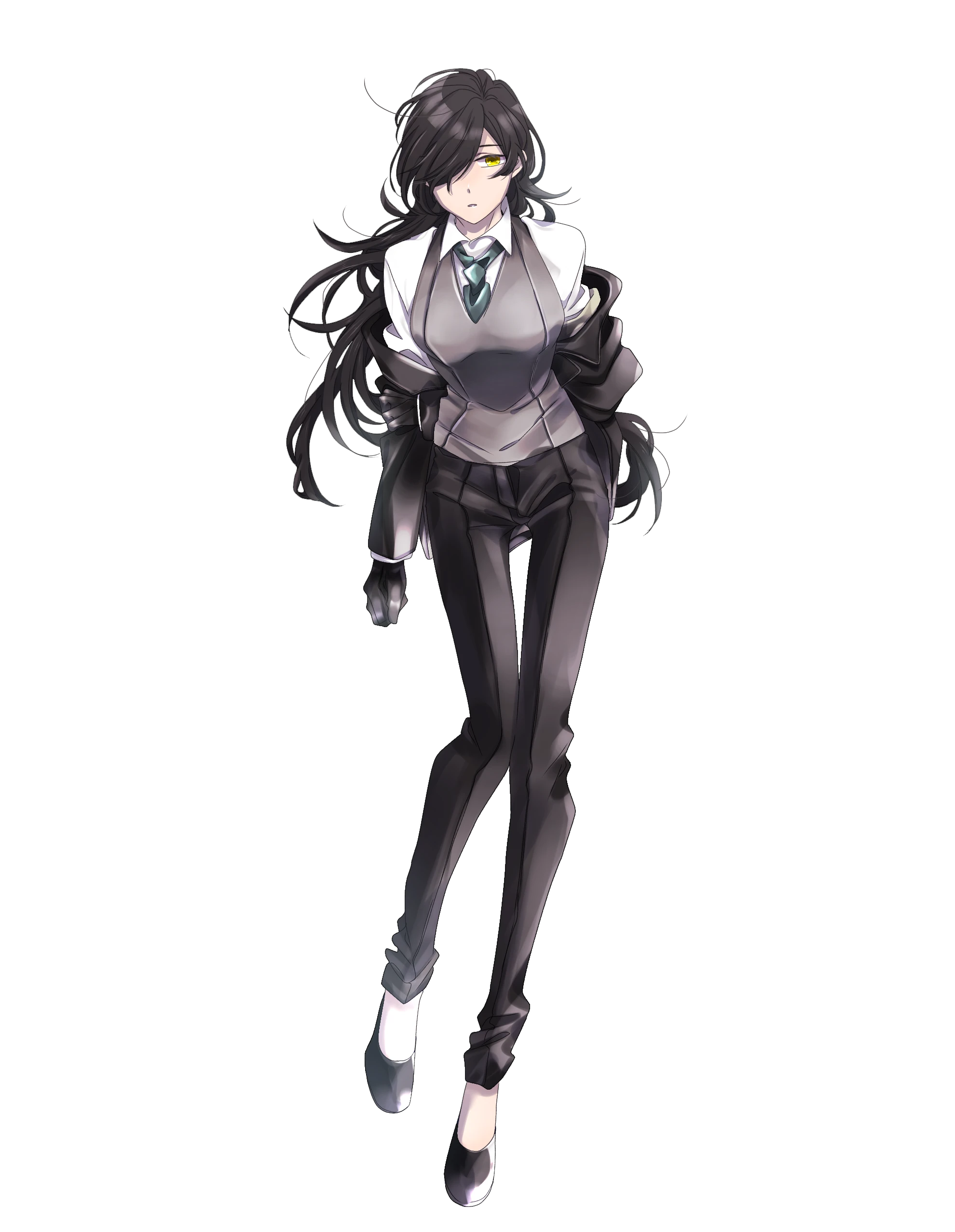 長く伸ばした右側の前髪の下は魔眼があるものの、強大な破壊力も無く妨害と攻撃兼用の器用貧乏型。