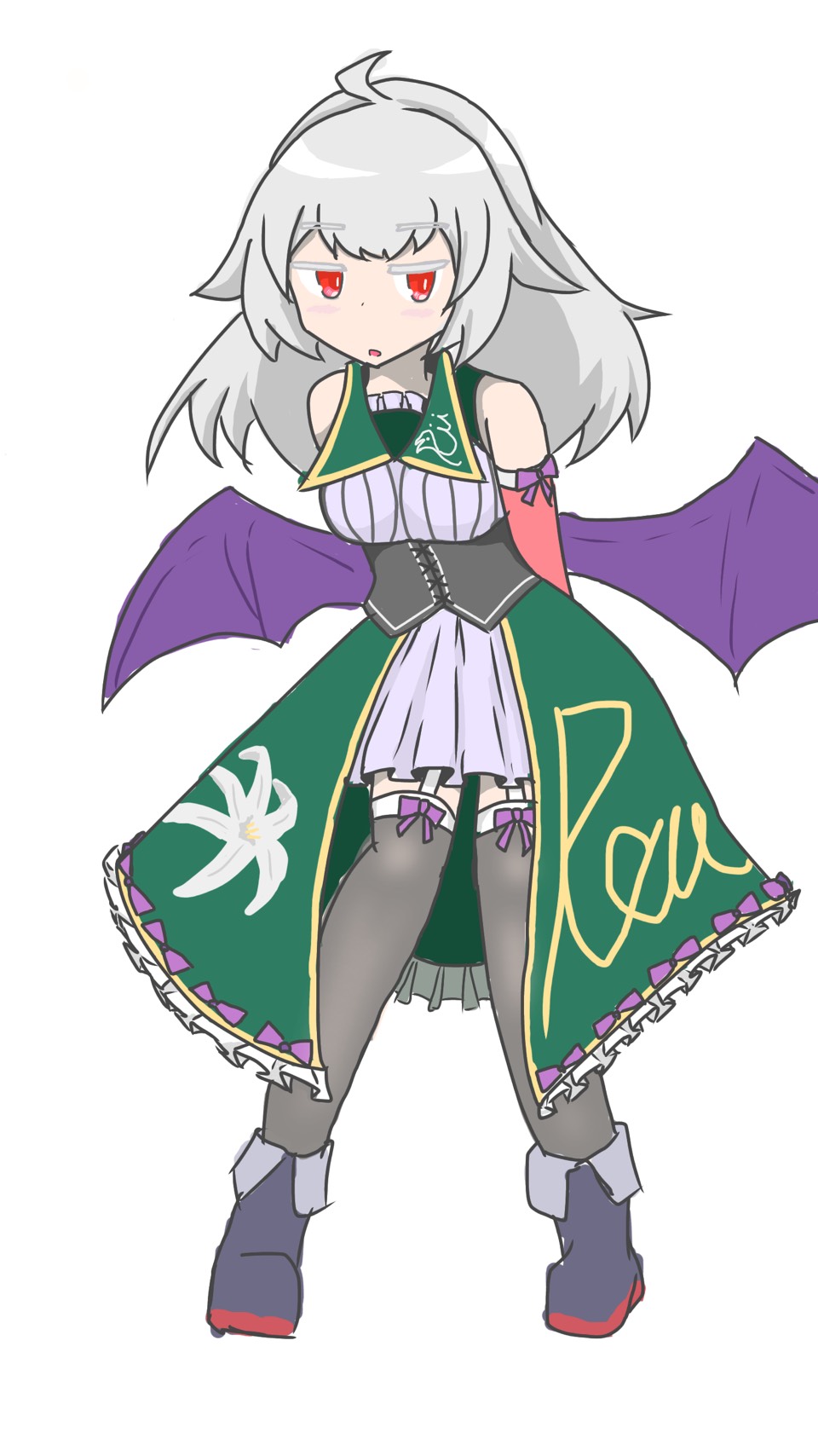 外見は頭頂部にアホ毛が1本とサイドがケモ跳ねしている肩甲骨辺りまで伸びた長髪に眼は紅い色をした猫目ようになっている。