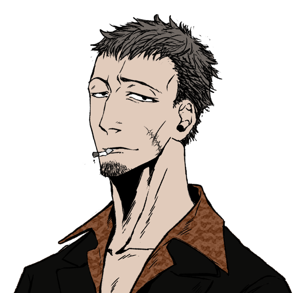性格は厳つい見た目に似合わず陽気で、冗句と煙草を嗜むが、嘘と酒は口にしない。