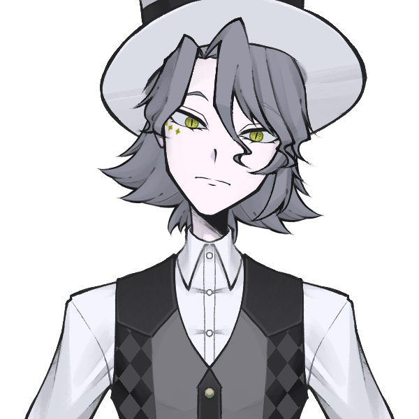 明るい黄色の瞳をもち、結構ガッツリ吊り目のガッツリたれ眉で大抵真顔か困ってるか。