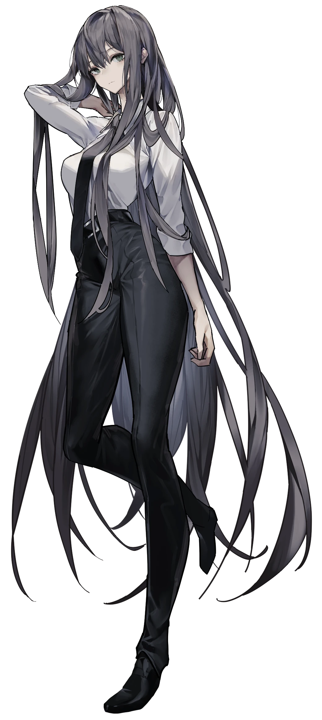 基本的には髪は下ろしていてかなりの長さがある。
