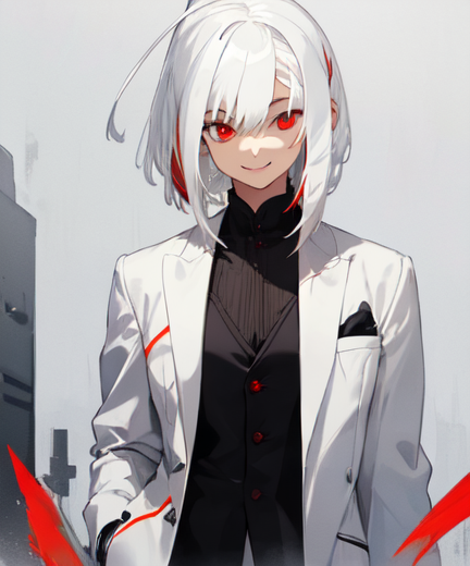 外見特徴:白骨色の髪、暗血色の瞳