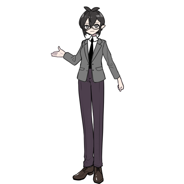 黒髪黒目の女性教諭。黒髪は長いので後ろで三つ編みにしてから団子にしてまとめている。