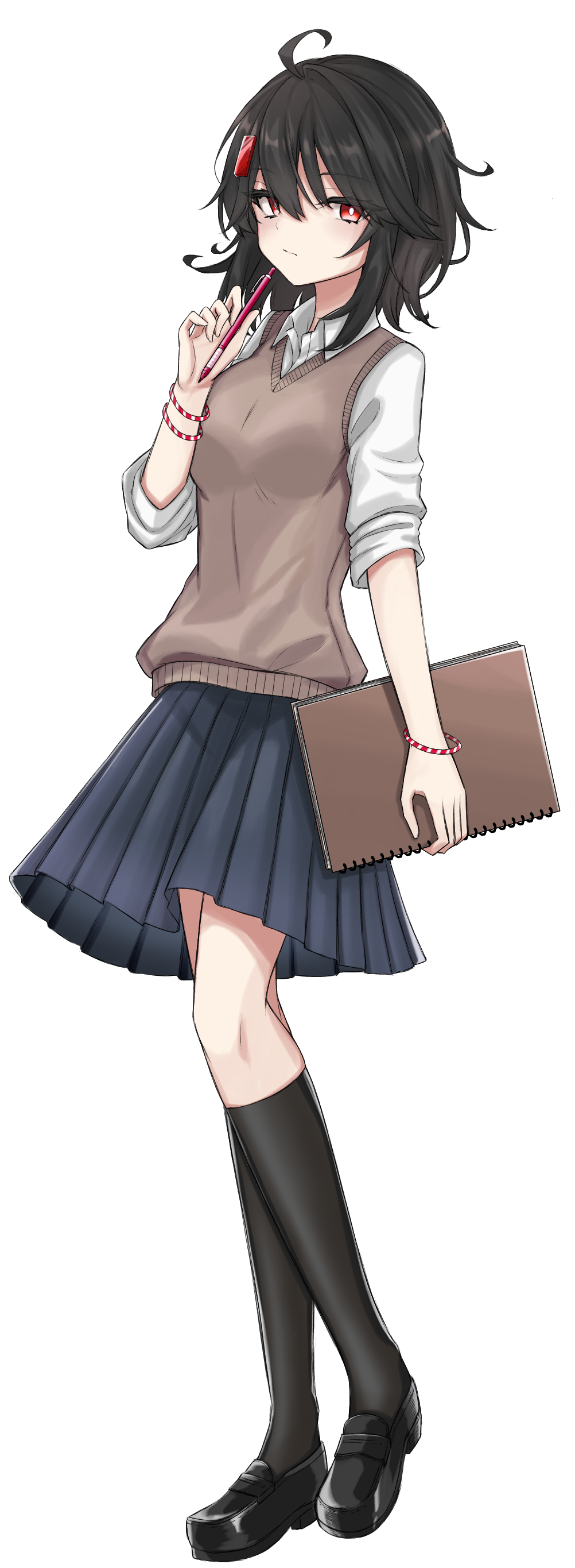 特徴的な赤いヘアピンを身に着けた糸目の物静かな少女。
