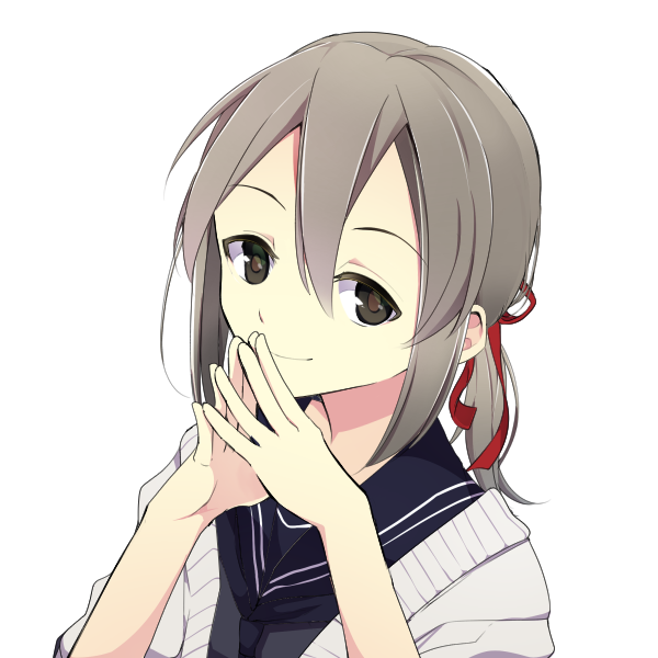 【容姿】くすんだ灰色の髪を赤いリボンで1つに結び下ろした髪型。くすんだ灰色の髪は家の遺伝。