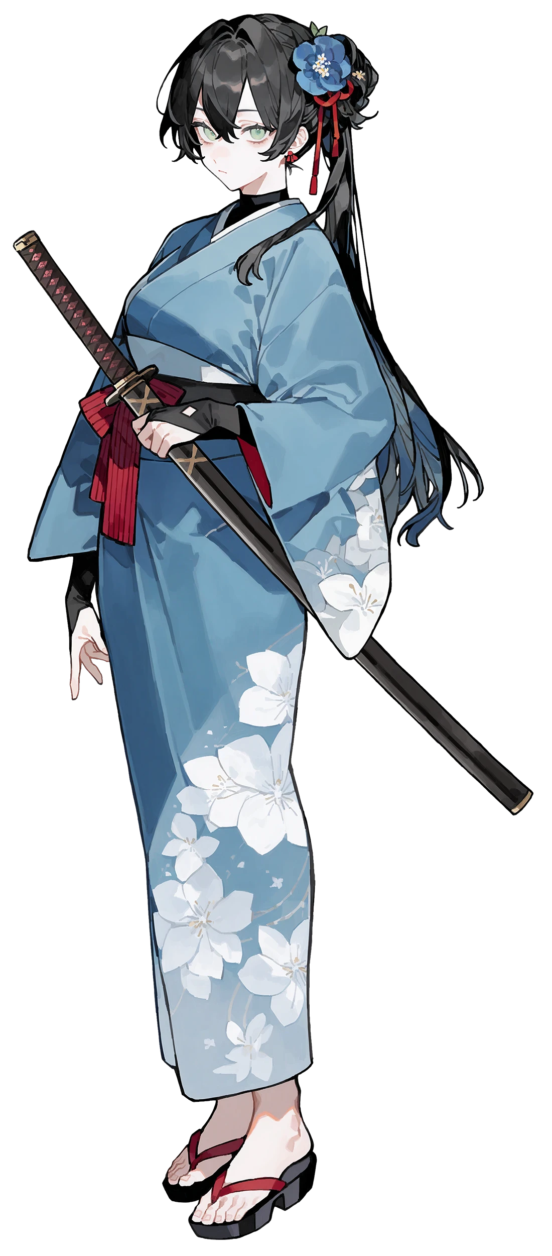 刀は光を吸い込むほどの漆黒の刀身が、鞘は由来不明の純白の鱗に飾られているのが特徴。
