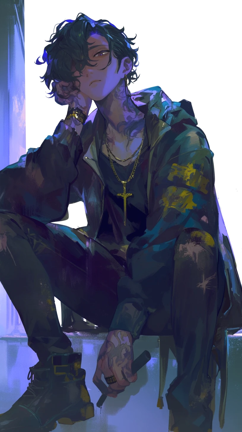 普段は猫背でだるそうに立ち、半開きの眠そうな目と無造作な黒髪が印象的。