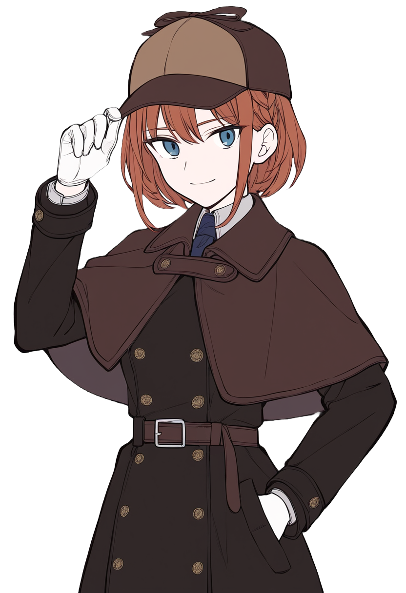 鹿撃ち帽にインバネスコートを羽織ったザ・ホームズテイストな探偵娘ちゃん