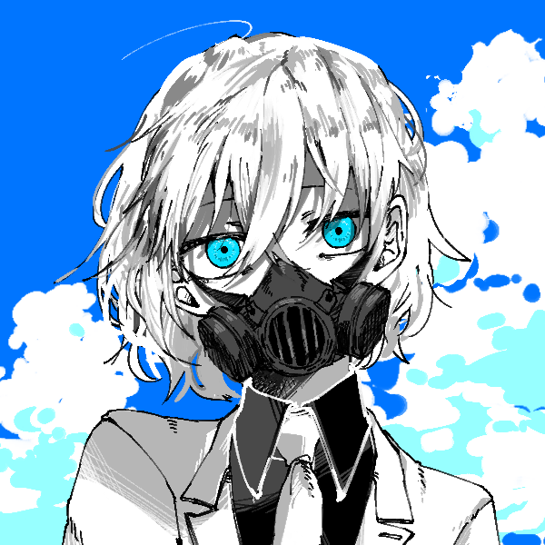 白髪に鮮やかな青色の瞳を持ち、常に白衣とガスマスクを身に付けている女子高生。