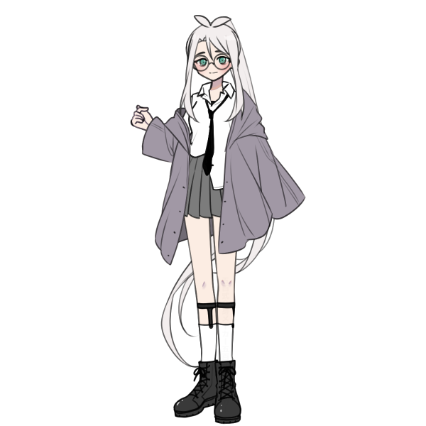 白髪の超ロング。基本ポニーテール。