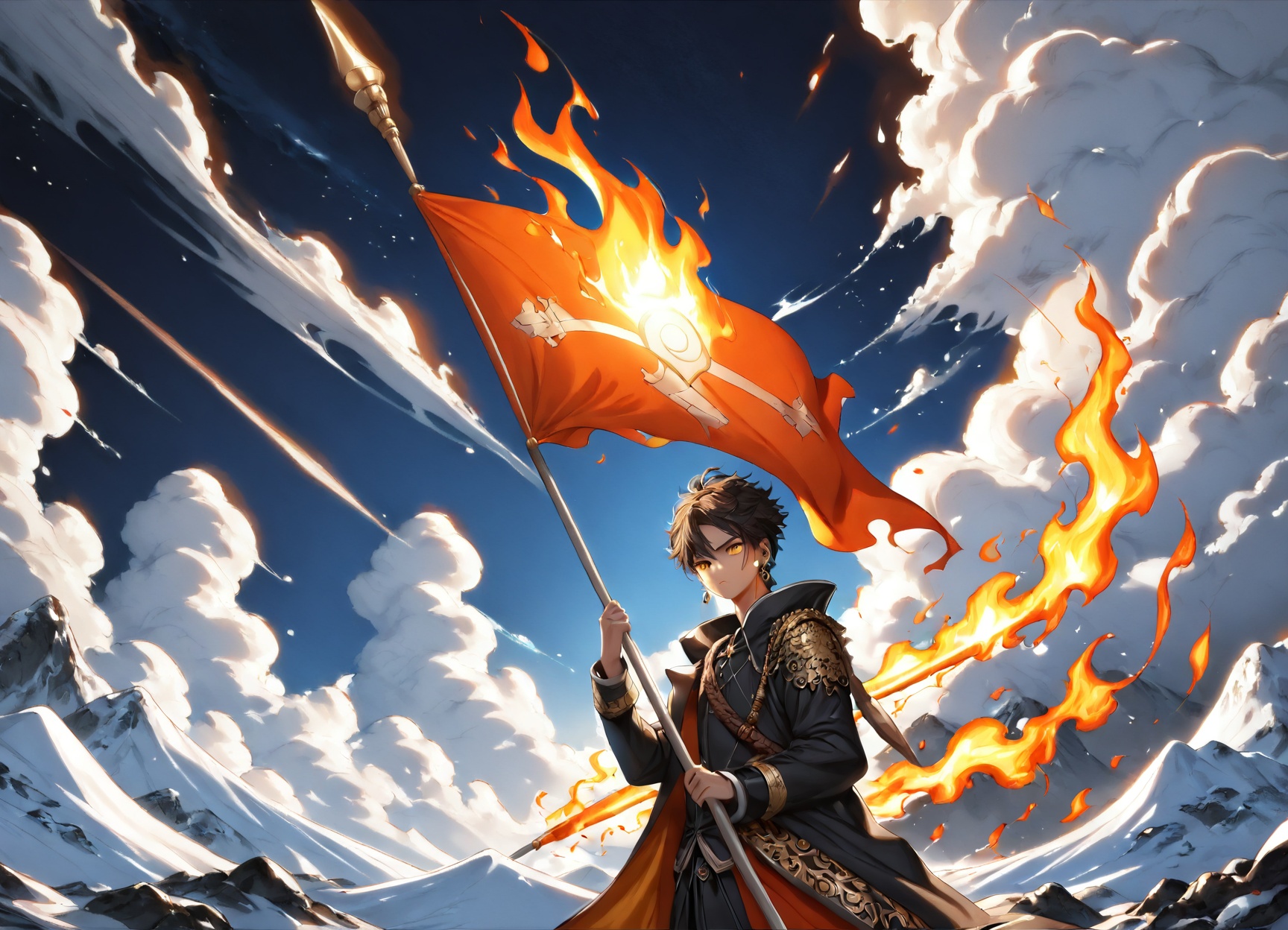 開幕のみ。トーチフラッグのみならず、彼自身が激しい炎に包まれる。