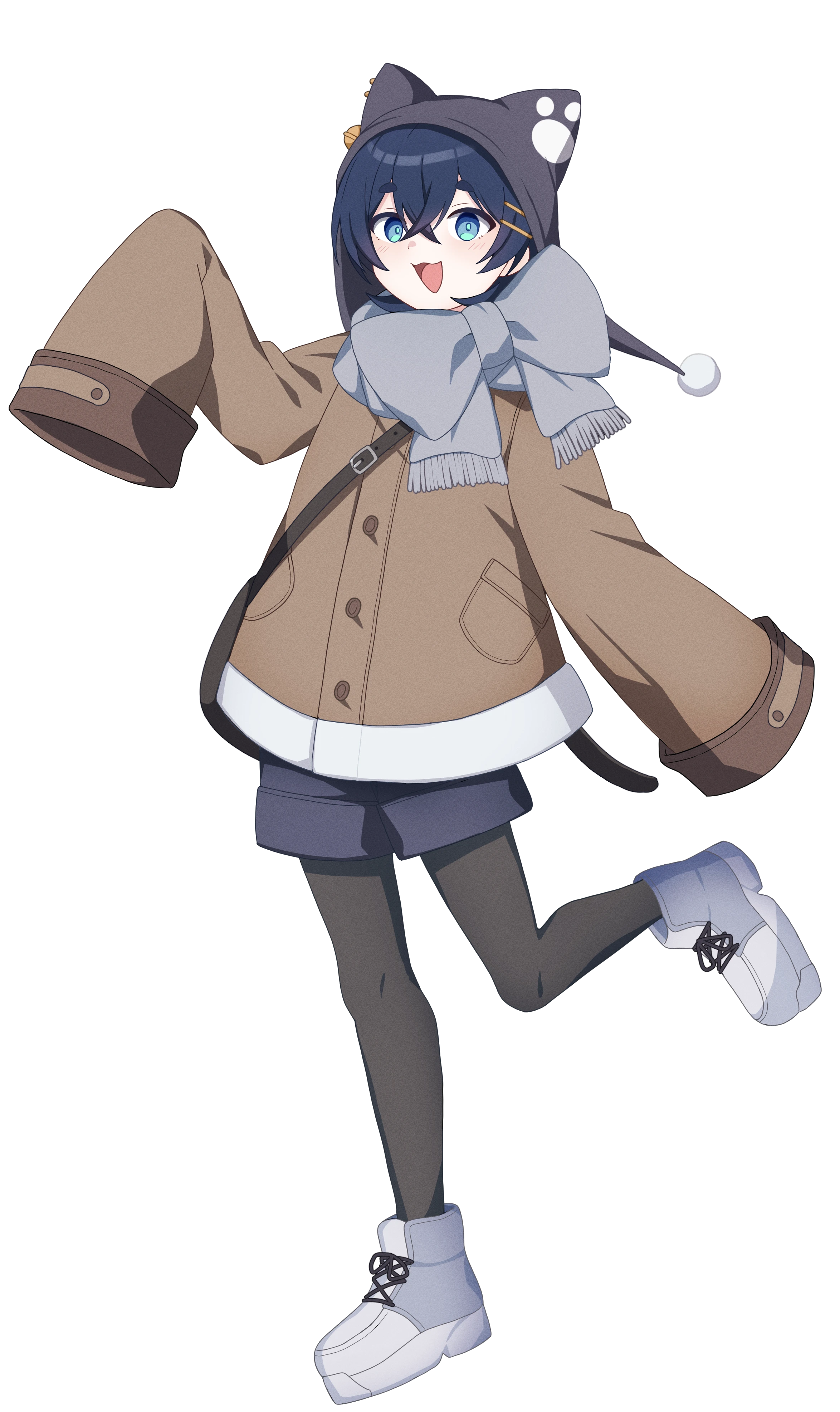サイズ感のあっていないダボダボのカーディガンと猫耳のついた帽子が目印。