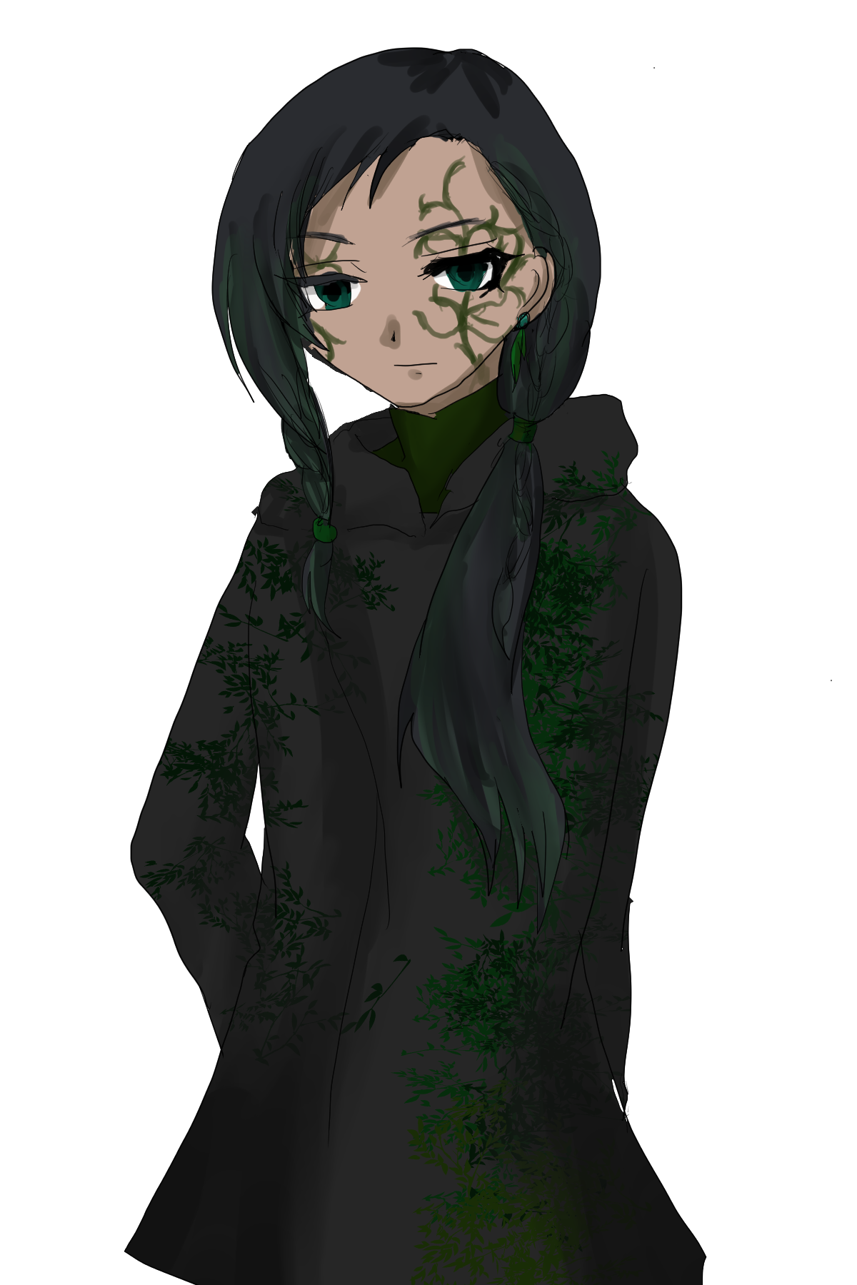 髪の色 緑がかかった黒髪