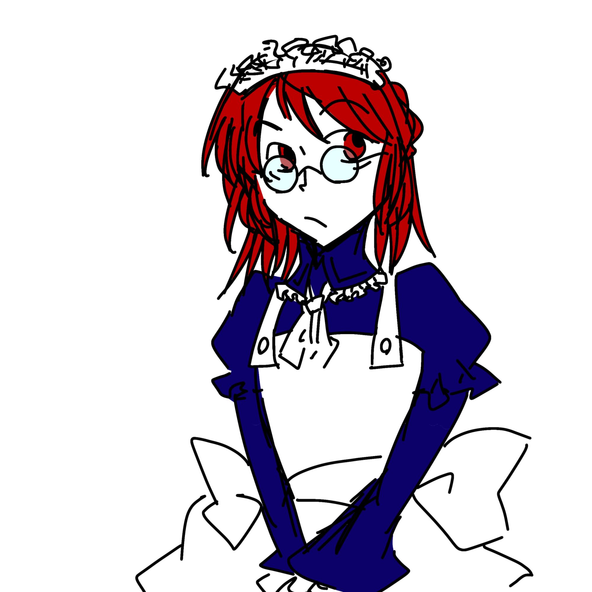 メイド服で眼鏡の女性。