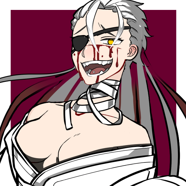 長髪、巨乳、サラシ、眼帯をした女