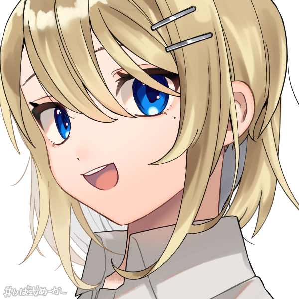 金髪のショートカット。済んだ青い目が特徴的。