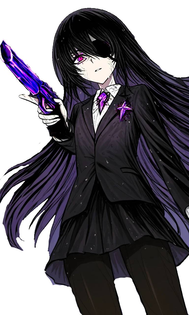 一人称は"私"・平坦・烏の濡れ羽色をした長髪・紅い瞳+眼帯・黒スーツ+黒タイツ+スカート・冷静冷徹・躊躇と容赦が無い・生と死が近しい感覚・悪魔の加護を受けてるタイプ・RB故に性差に関して気にしない(両刀)・教養が薄い・甘いものが好き・意外とおおざっぱ。