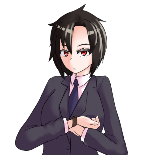 あまり整えられていない黒髪のショートヘア、紅赤色の瞳をした身長の高い女性。