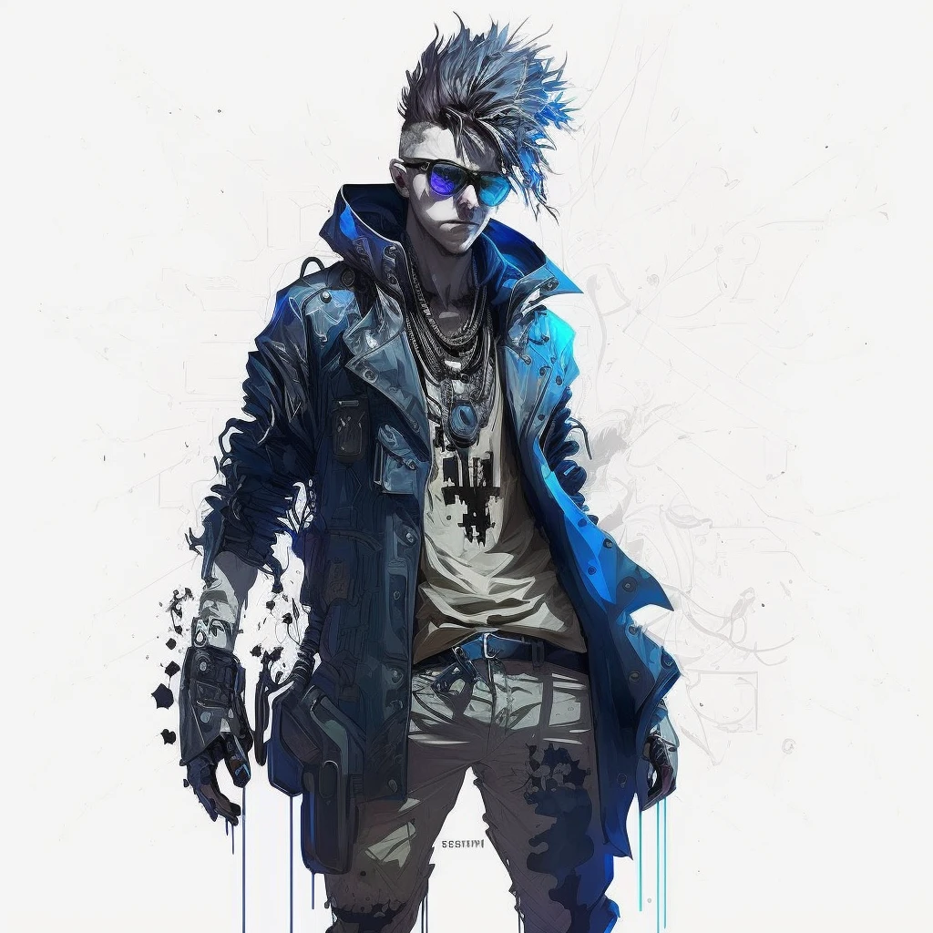 青いパイロットジャケットにモヒカンスタイルという奇抜な服装。目元が若干幼いのを気にしてサングラスを常に着用している。