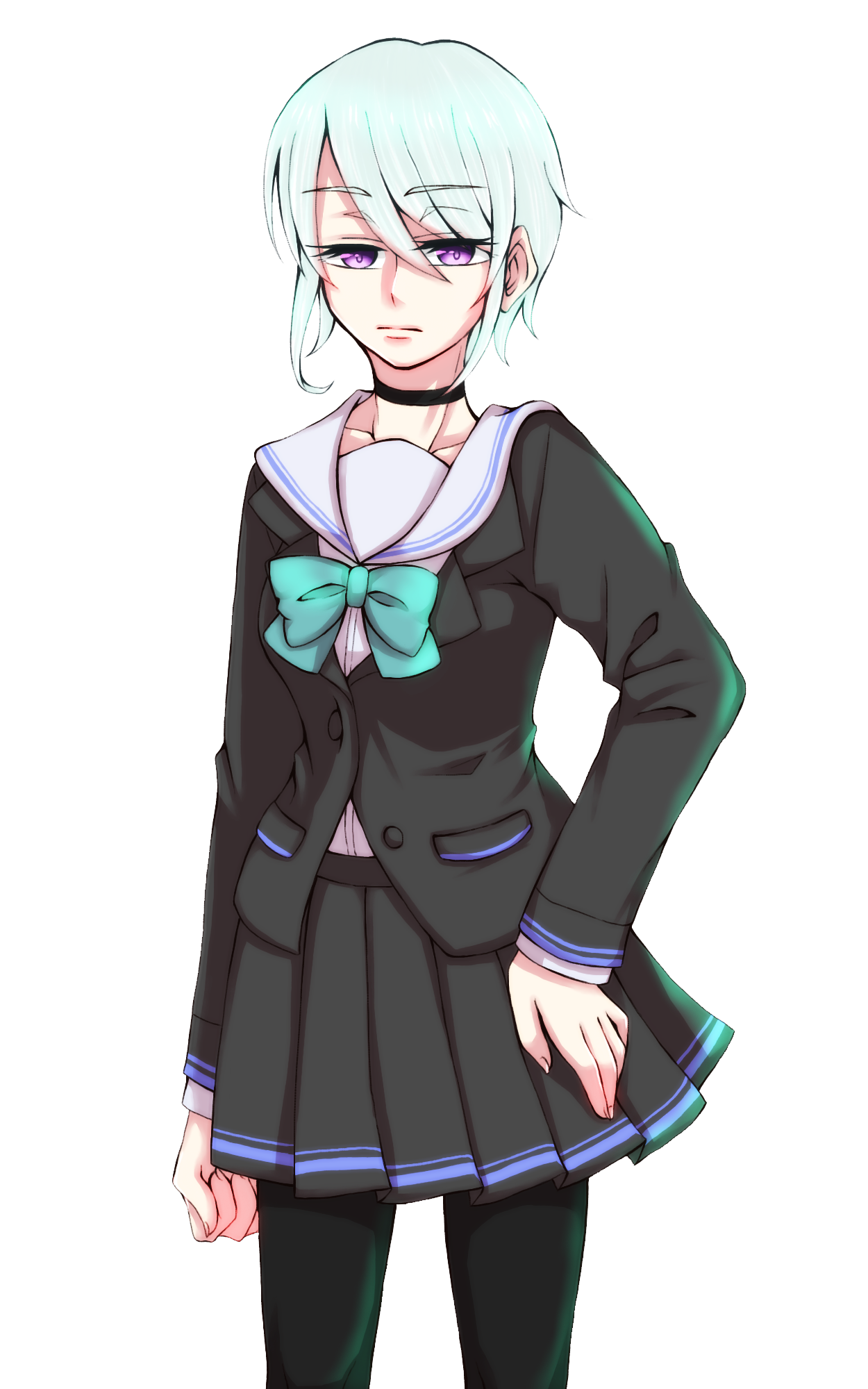 首にはチョーカーを付けている。