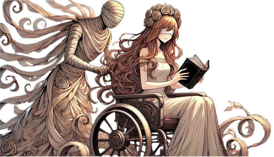 普段は砂霊に車椅子を押してもらったり、身の回りの世話を任せている。