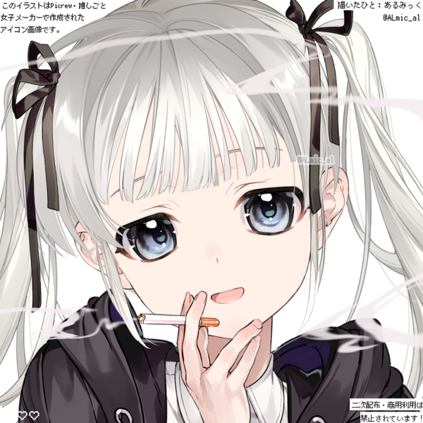 ツインテールの白髪と黒いジャケット、そして煙草がトレードマーク。
