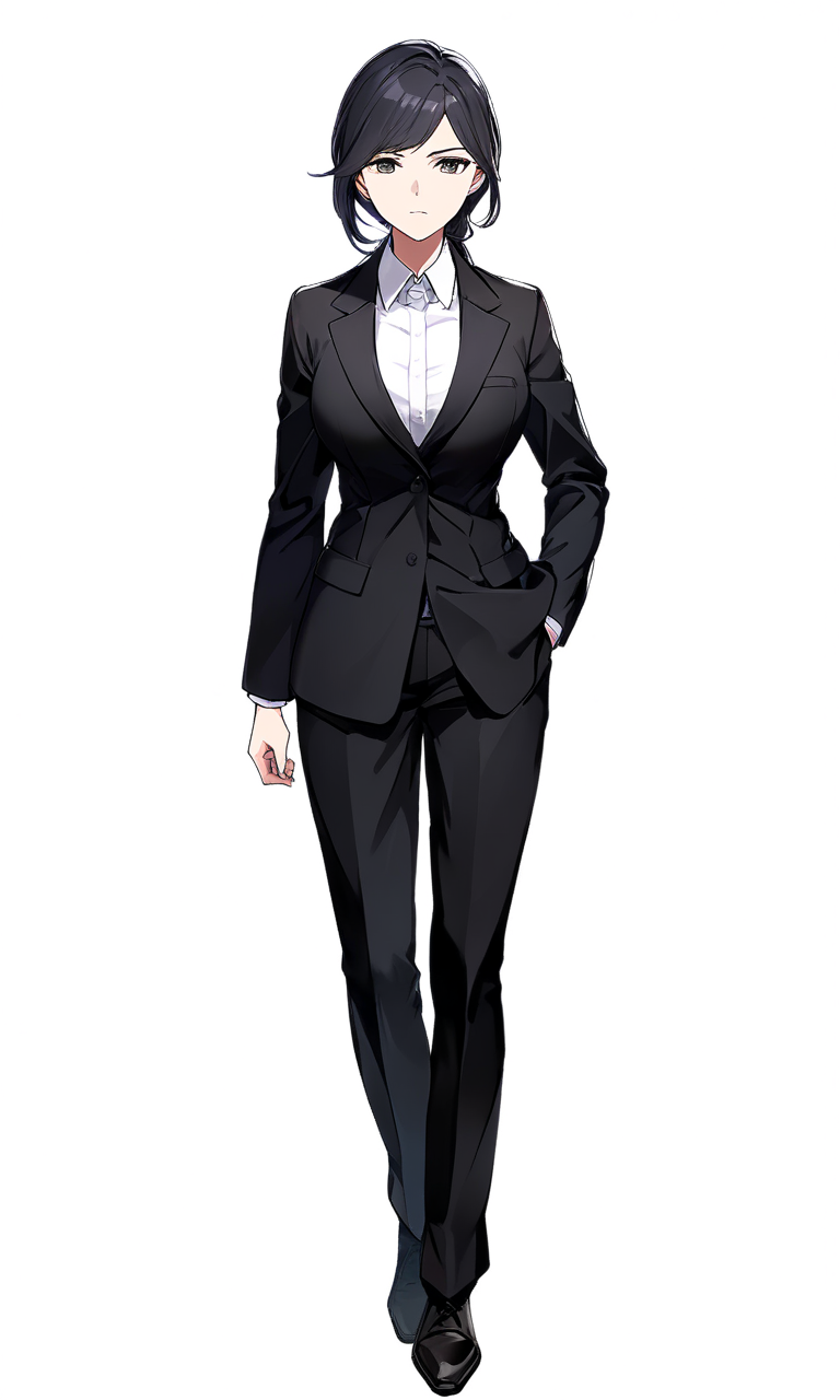 長髪を首のあたりで括った黒スーツの女性