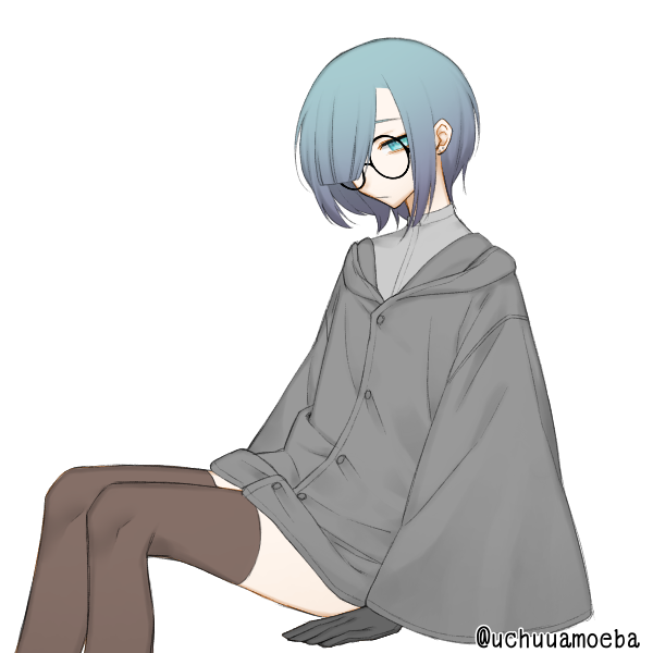 - サマーシャワーの髪色に右目を覆う様に垂らされた前髪、ターコイズのような瞳、黒フレームの丸眼鏡
