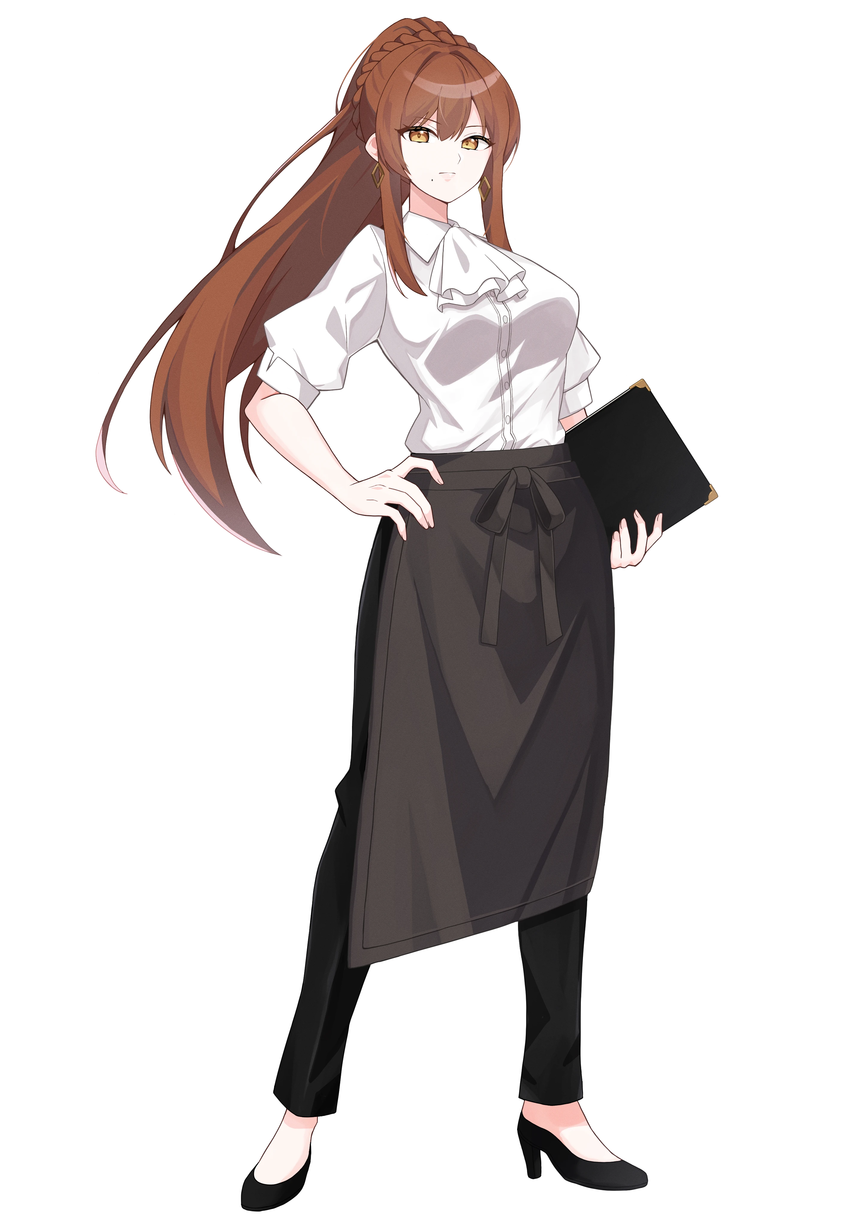 長い茶髪を一纏めにした女性。