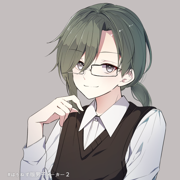 9対1ぐらいで右側によってる前髪と、右だけが長い横髪、男性にしては少々長い後ろ髪は一つにまとめられている。