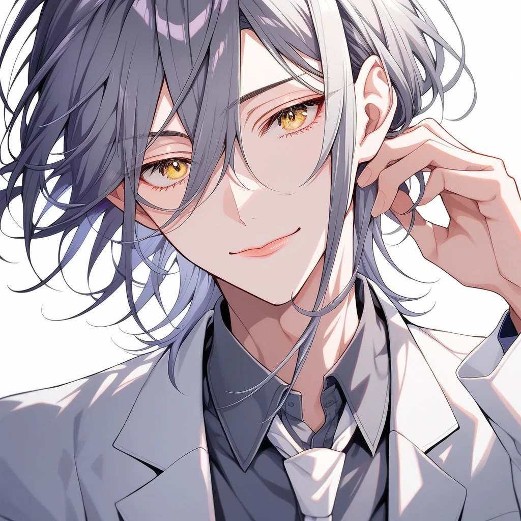 グレーの短い髪に金色の瞳。白い肌。中性的なルックス。高い身長。多少の筋肉はあるが細い身体。