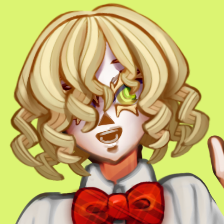 金髪、黄緑目