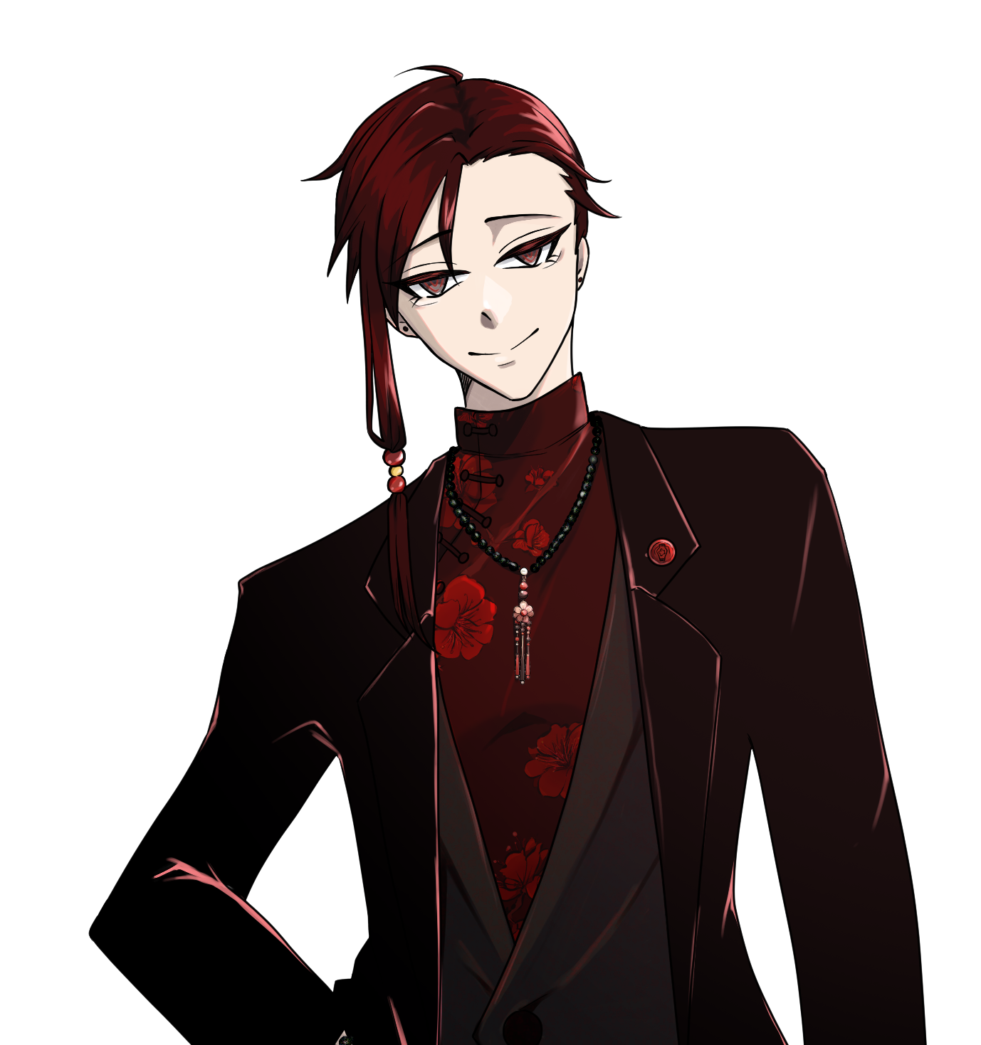 右側だけ少し長く、右の横髪はビーズでまとめている