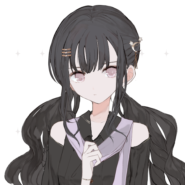 普段着は肩出しの黒ワンピース擬き、月の髪飾りに白のストール。黒い短パンを下に履いていたりする