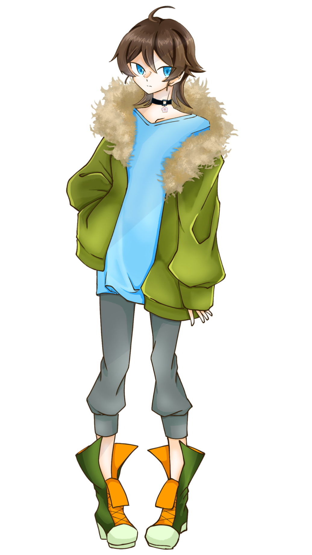 男で産まれてくることを望まれてたので男装に近い格好をしている。