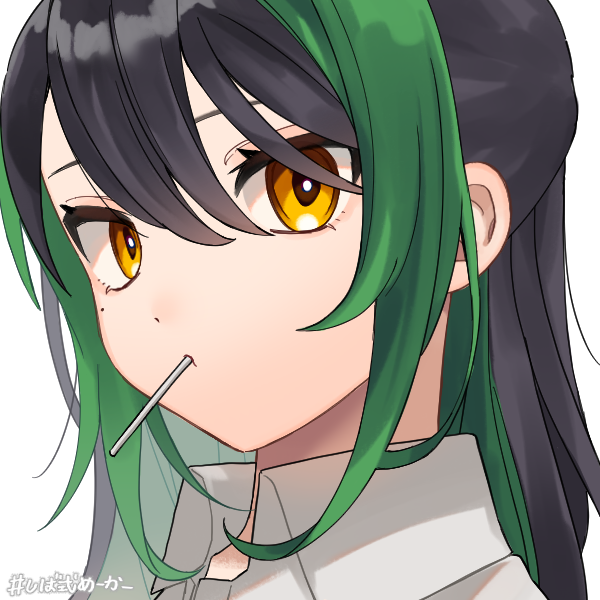黒&緑琥珀目つきがやや鋭い