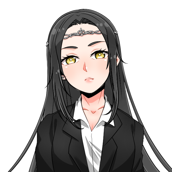 しっとりとした黒髪と対照的な黄色い瞳が印象的な女性。