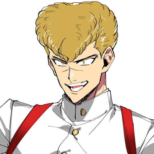 曲がった事が嫌い、考える前に身体が動く脳筋漢。見た目は怖く、口調も荒いが面倒見は良い性格。たまに捨て猫に傘をかけたり、エサを与えている姿が目撃されているが、本人は否定している(恥ずかしいから)。