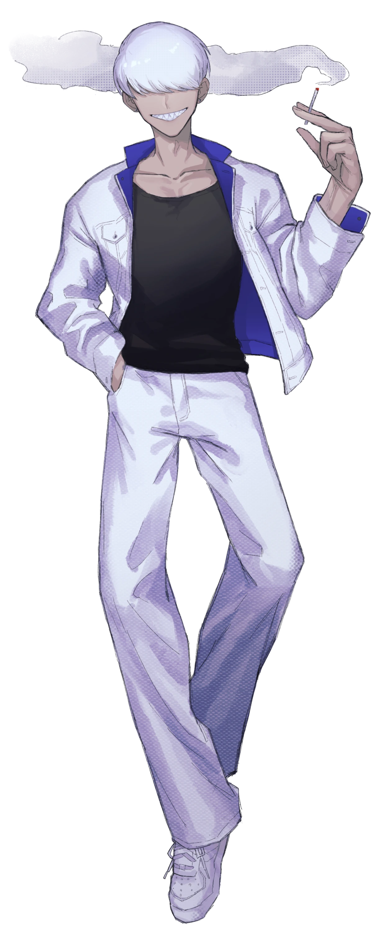 白髪マッシュの褐色メカクレ。