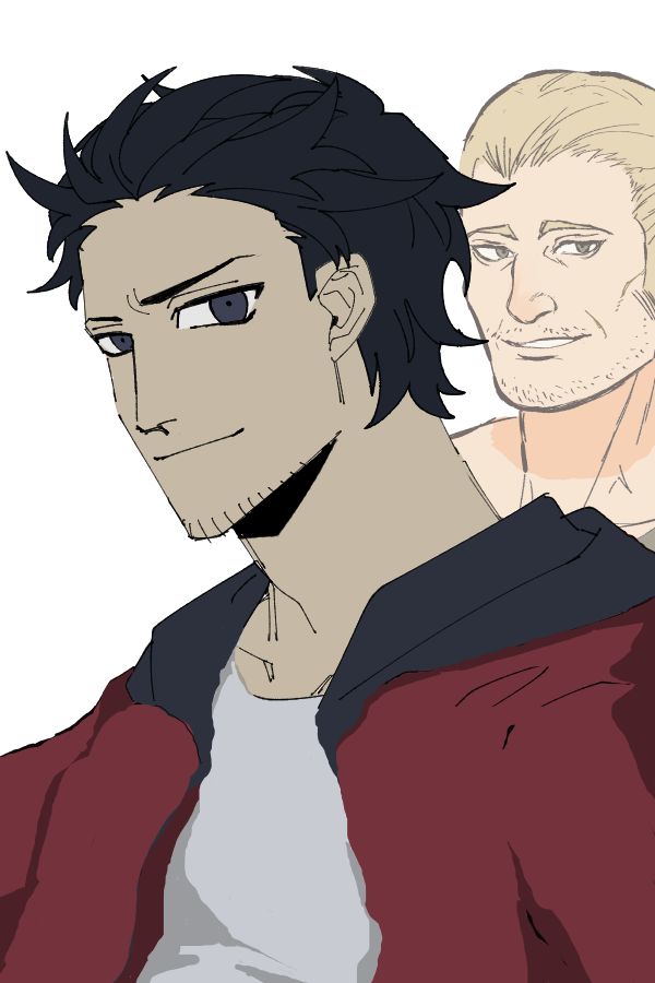 Picrew「おさかなの男」と「ゴツめおじさんメーカー」の合成。セッションでは手前だけ使用予定。